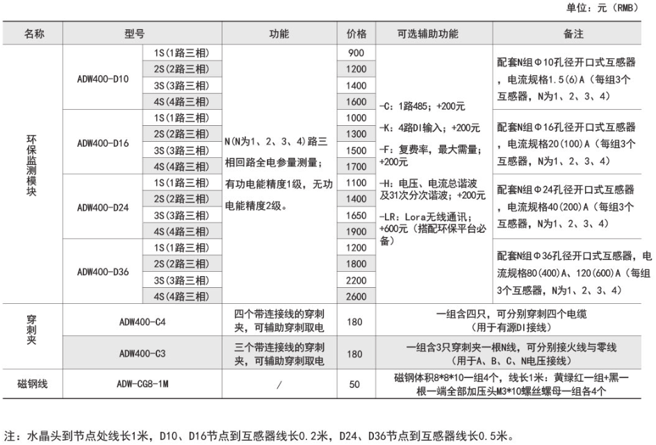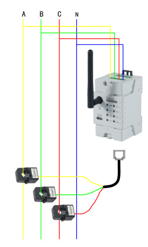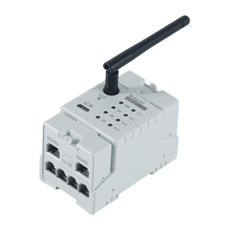 ADW400環保監測模塊主要用于計量低壓網絡的三相有功電能,同時可選擇四個回路的電流輸入,具有RS485通訊和470MHz無線通訊功能,方便用戶進行用電監測、集抄和管理。可靈活安裝于配電箱內,實現對不同區域和不同負荷的分項電能計量,統計和分析。