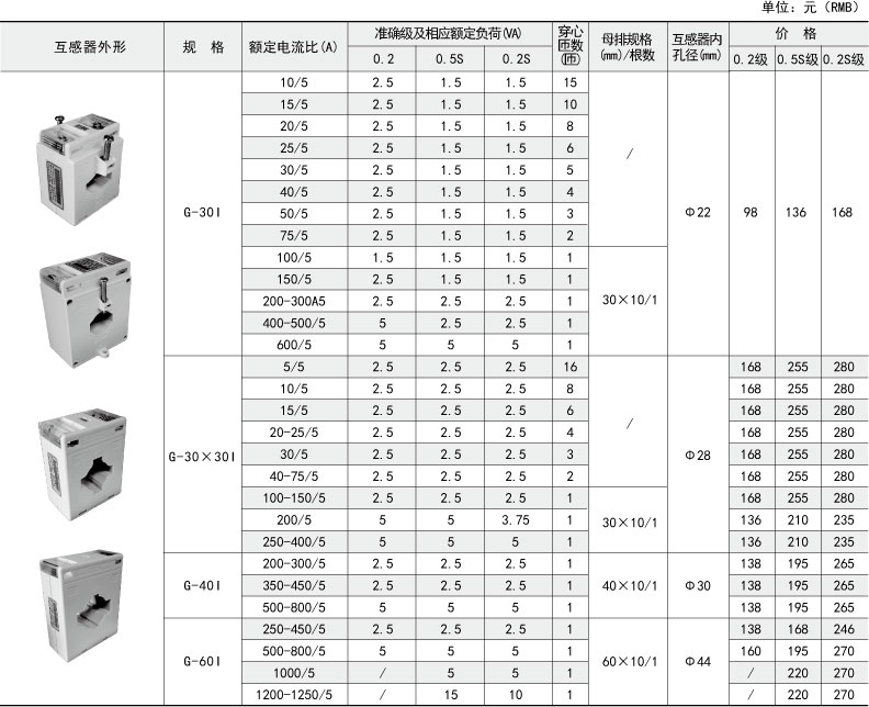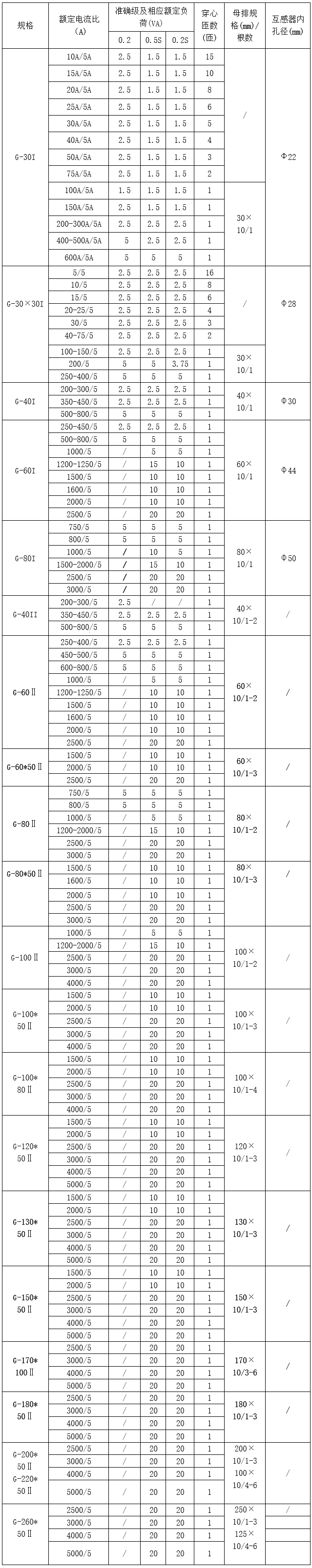 技術要求:額定電流比400A/5A;準確級0.2級;額定負荷2.5VA;穿心匝數1匝;內孔徑φ30;母排規格40mm×10mm 1根。