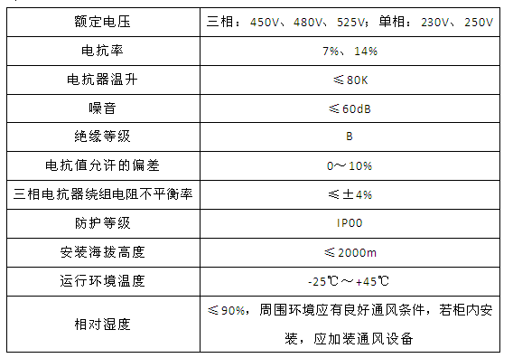 技術要求:適用電容器5kVAR;7%電抗率;銅芯