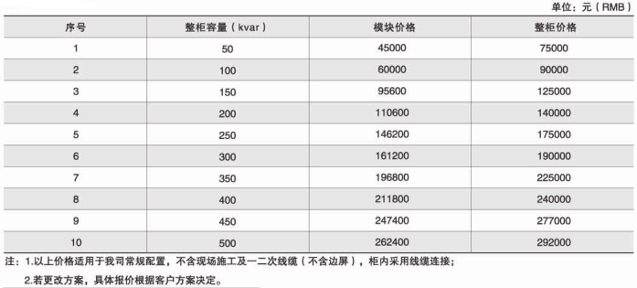 適用于頻率50Hz電壓0.4kV電網的無功功率動態補償。