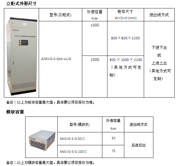 安科瑞產(chǎn)品智慧型動(dòng)態(tài)無功補(bǔ)償裝置主動(dòng)根據(jù)系統(tǒng)的線性動(dòng)態(tài)需求,自動(dòng)調(diào)節(jié)有源及無源模塊的輸出配比,ANSVG-S-G整機(jī)主要是由ANSVG-S-G模塊、無源補(bǔ)償電容器(TSC)、液晶顯示器組成。