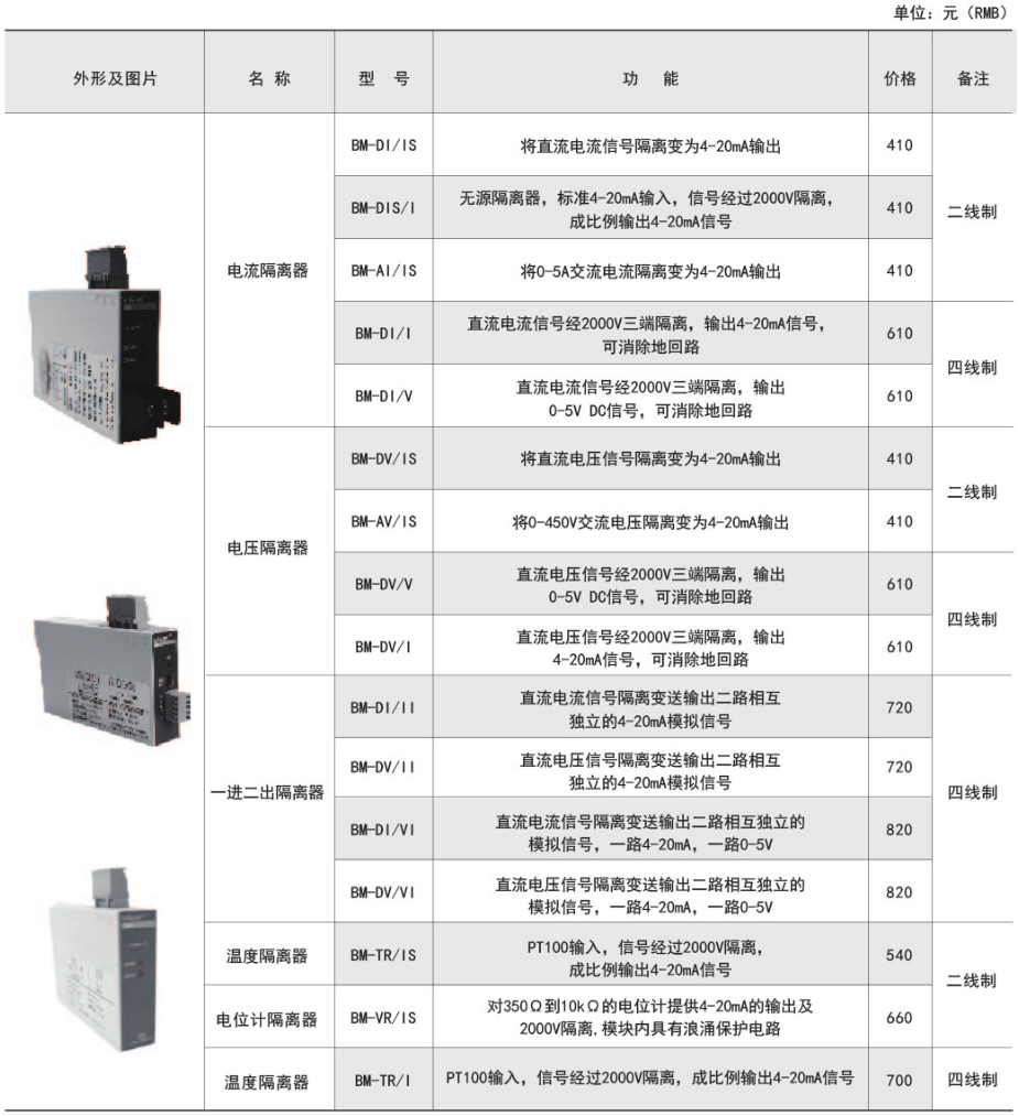 BM系列模擬信號(hào)隔離器可以對(duì)電流、電壓等電量參數(shù)或溫度、電阻等非電量參數(shù)進(jìn)行高速精確測(cè)量,經(jīng)隔離轉(zhuǎn)換成標(biāo)準(zhǔn)的模擬信號(hào)輸出。既可直接與指針表、數(shù)顯表相接,也可以與自控儀表(如PLC)、各種A/D轉(zhuǎn)換器以及計(jì)算機(jī)系統(tǒng)配接。