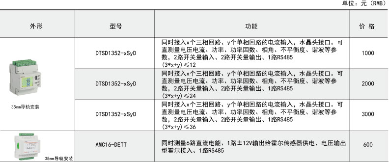 DTSD1352 - xSyD系列導(dǎo)軌式多回路電力儀表主要用于多個(gè)三相回路的全電參量測(cè)量,最多可同時(shí)接入x個(gè)三相回路、y個(gè)單相回路的電流輸入。可直接或間接測(cè)量電壓電流、功率、功率因數(shù)、相角、不平衡度、諧波等參數(shù)。