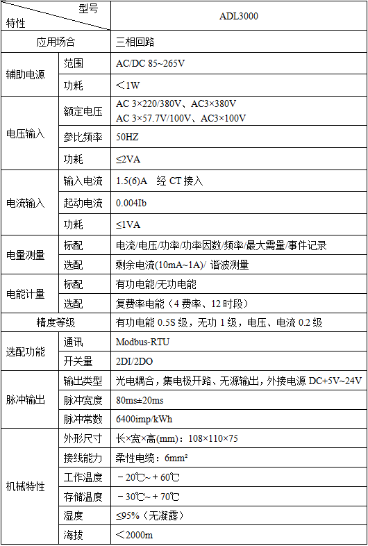技術要求:輸入電壓3*220/380V;輸入電流1.5(6)A;接線方式三相四線;互感器接入;2路開關量輸入、2路繼電器輸出;準確度1.0級。